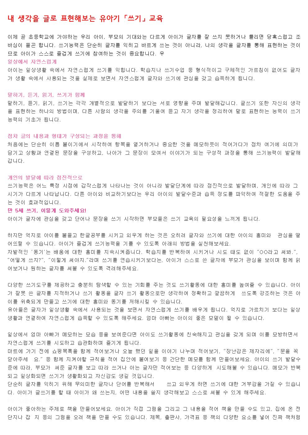 내 생각을 글로 표현해보는 유아기 「쓰기」 교육