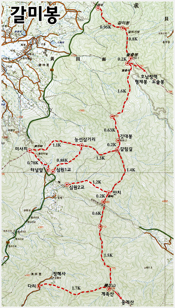 - 갈미봉 ~ 월출봉 : 0.8km
