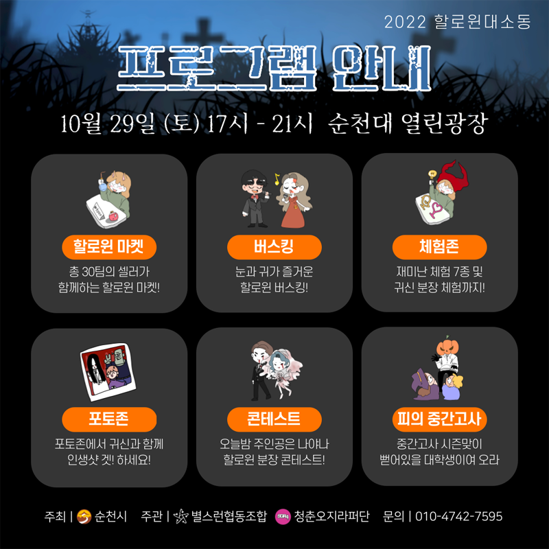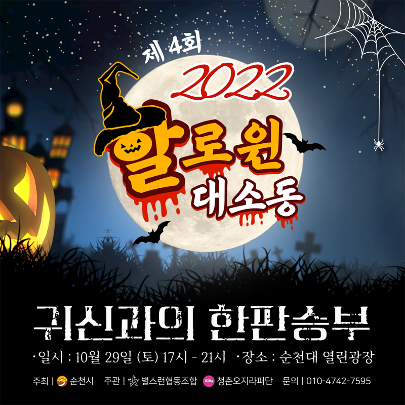 - 골목무대(순천대학로 일원) : 할로윈 마켓, 길거리 공연존, 할로윈 체험 등