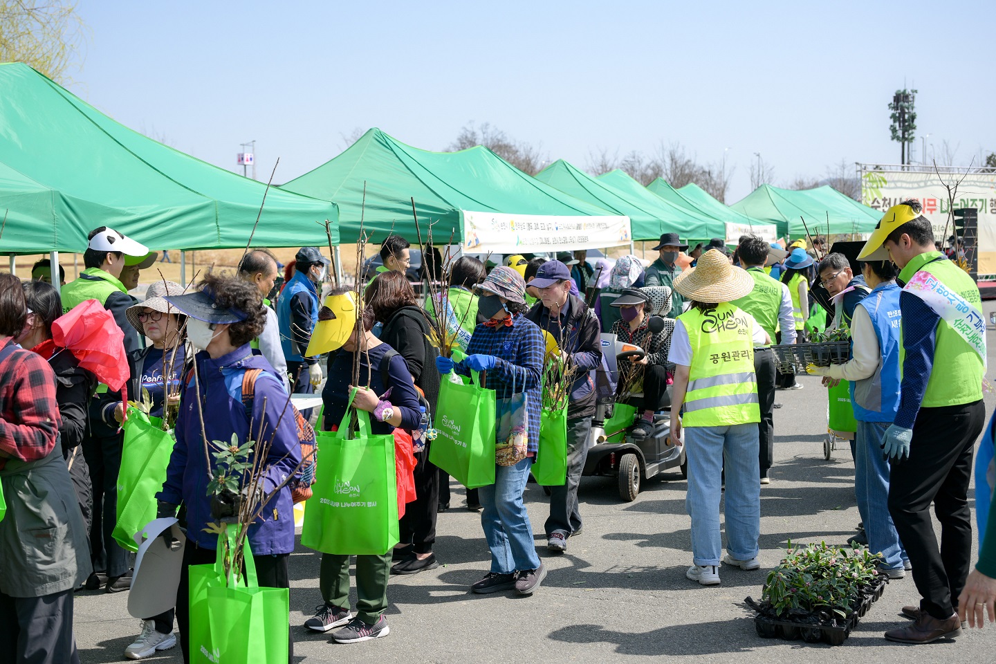 과실수, 조경수, 미니화분 등 총 21,000주의 묘목을 준비, 순천시민 3,000명에게 선착순으로 1인 7주씩 배부했다.