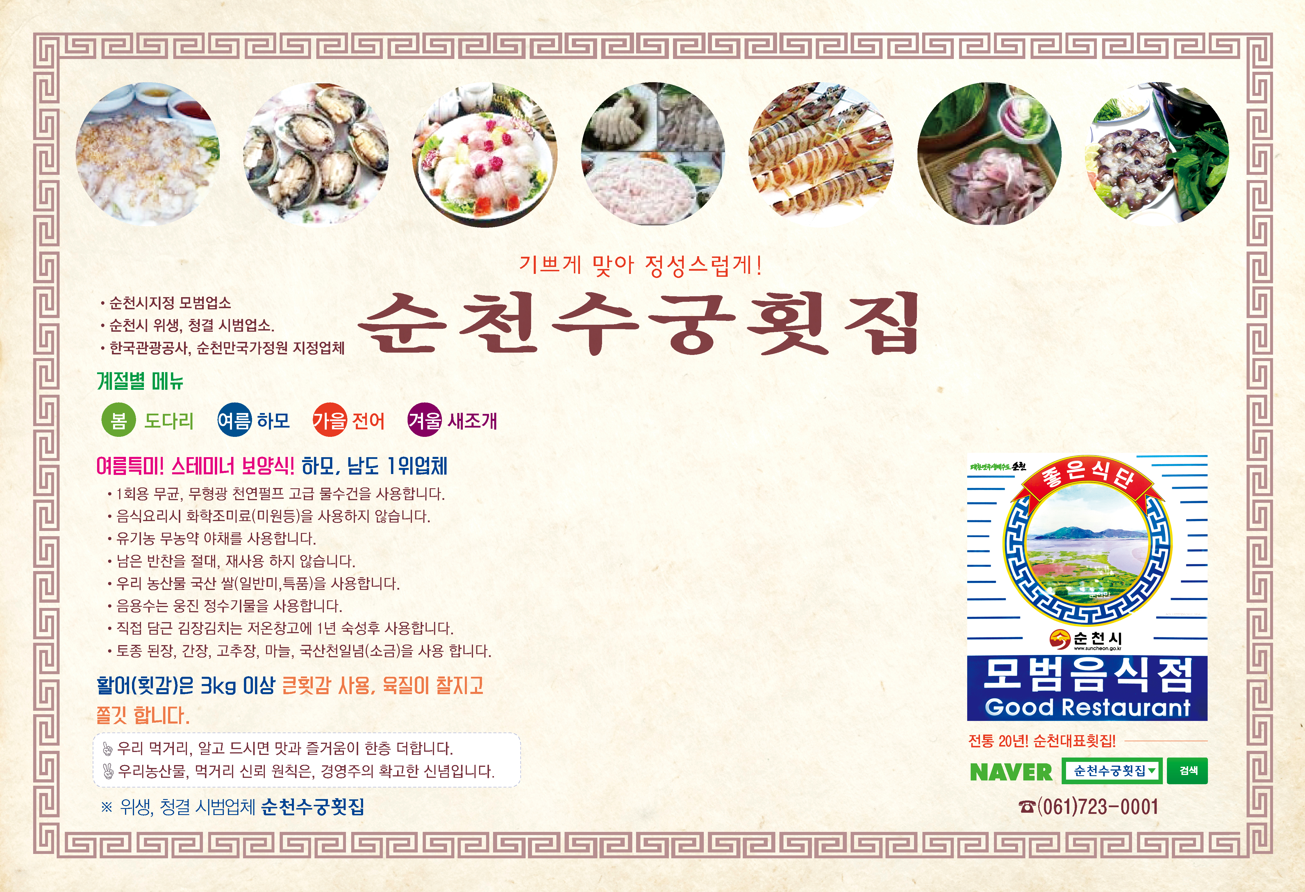 순천시지정 모범업소/ 한국관광공사 지정업체/ 순천만국가정원 지정업소/