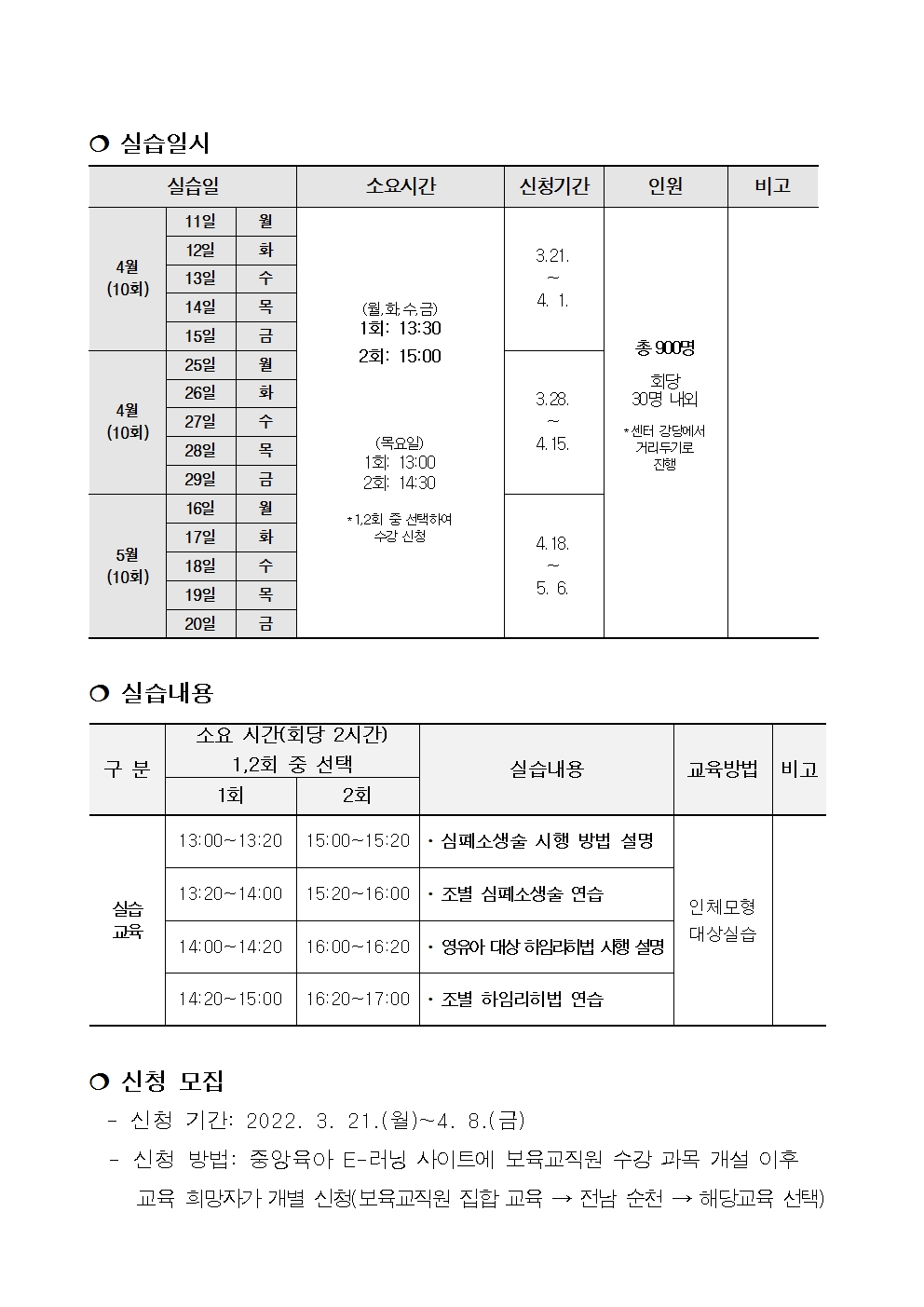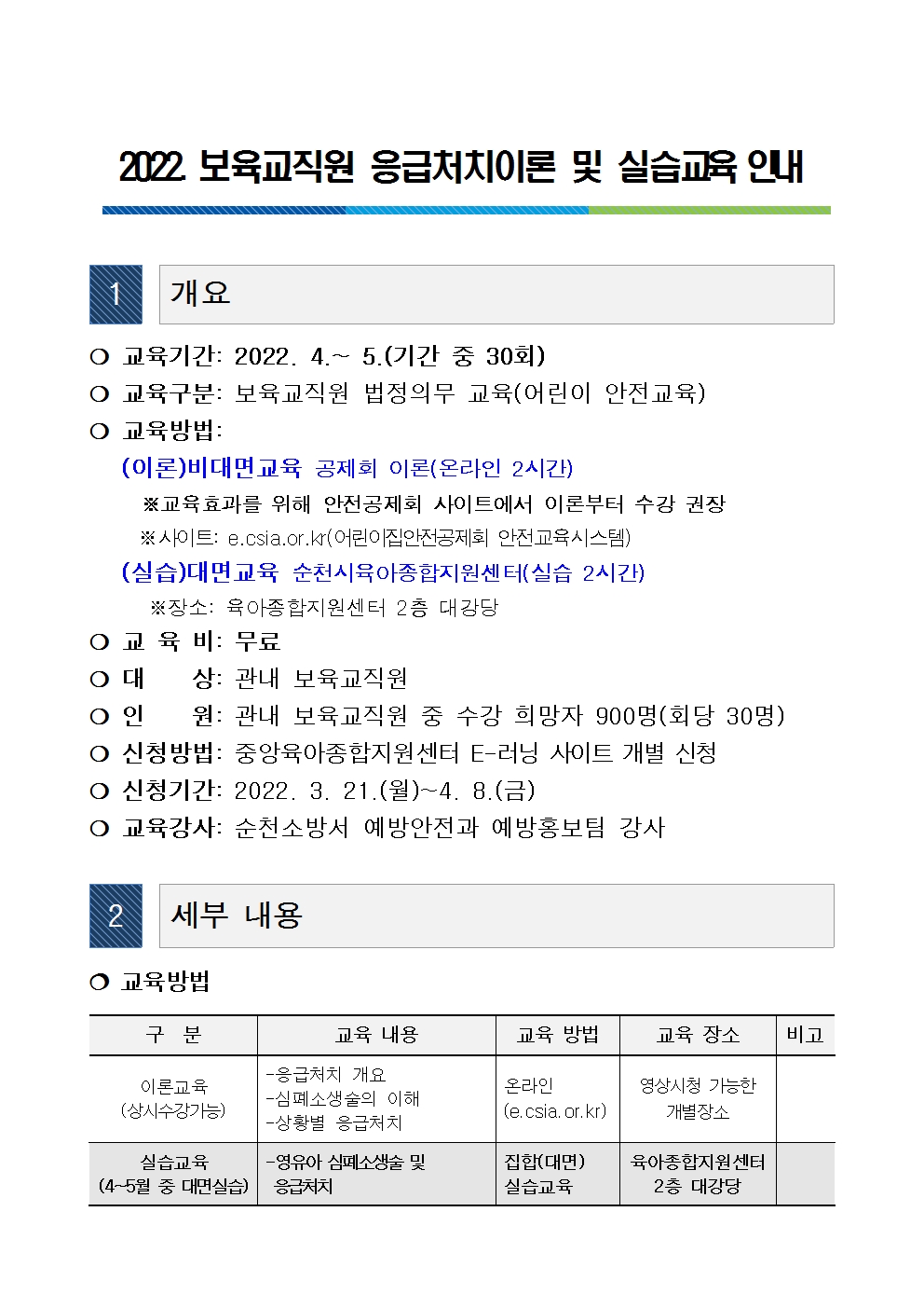 2022년 보육교직원 응급처치 실습교육 신청 안내