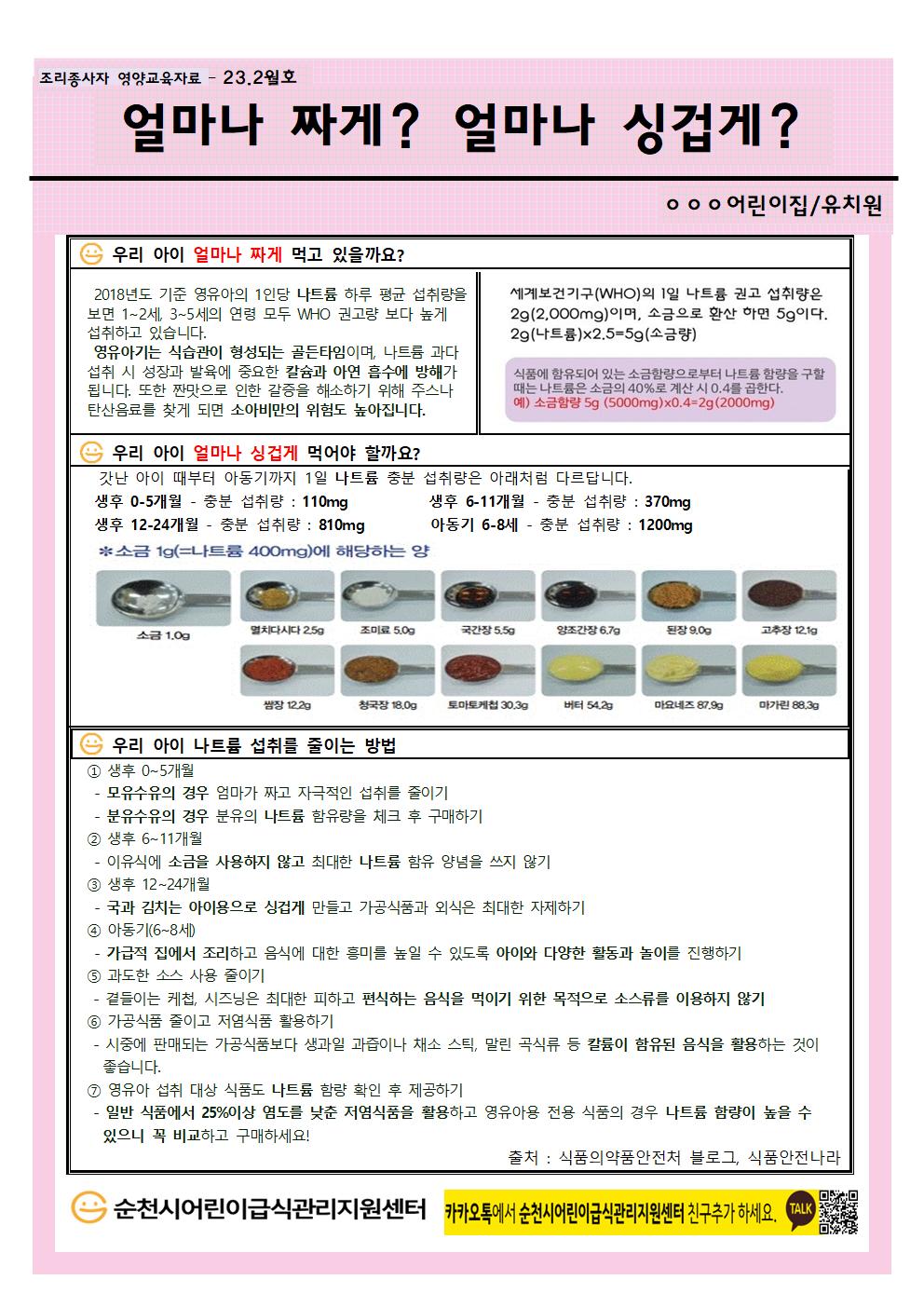 2023. 2월 조리종사자 영양교육(얼마나짜게? 얼마나 싱겁게?)