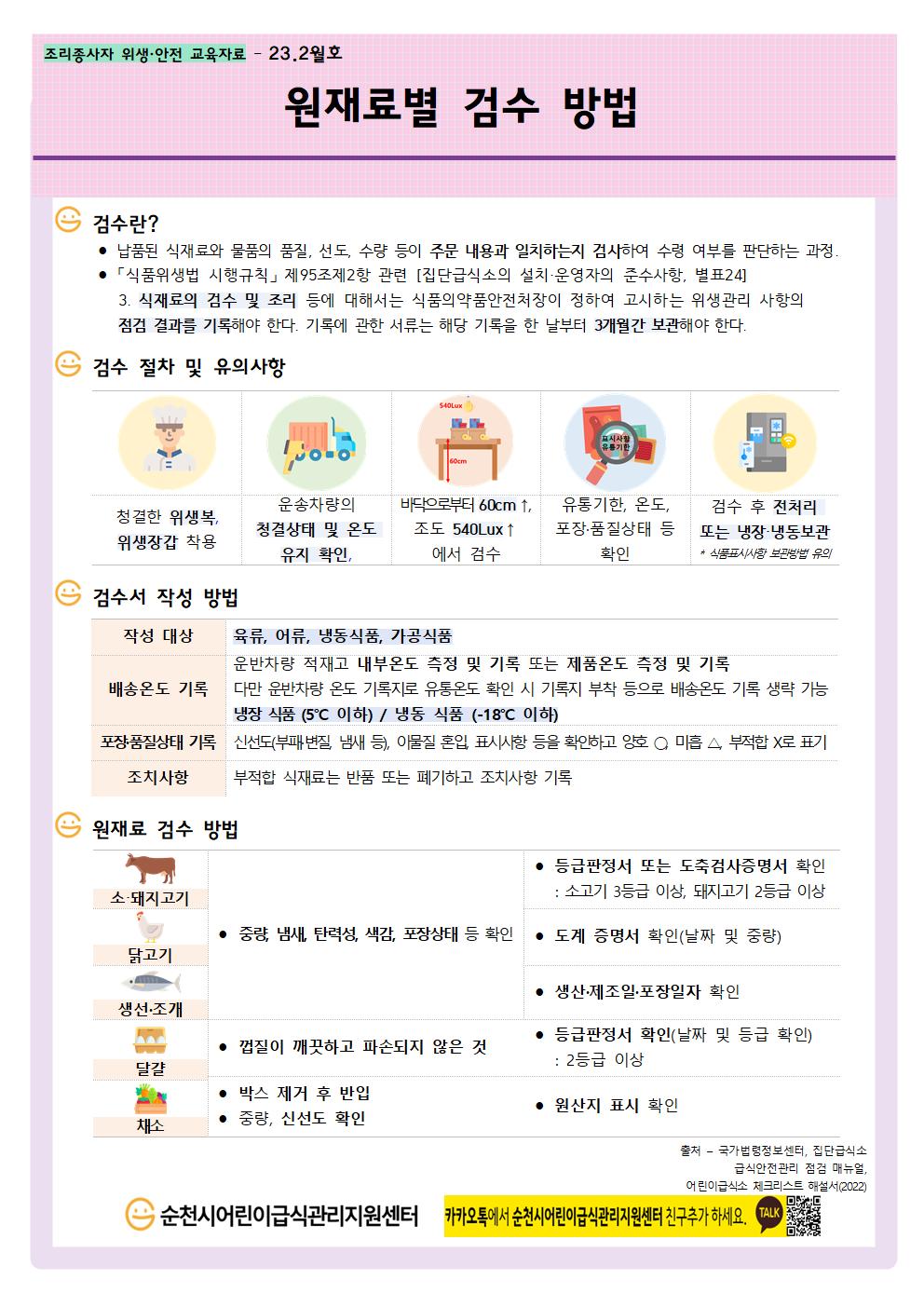 2023. 2월 조리종사자 위생안전교육(원재료별 검수 방법)