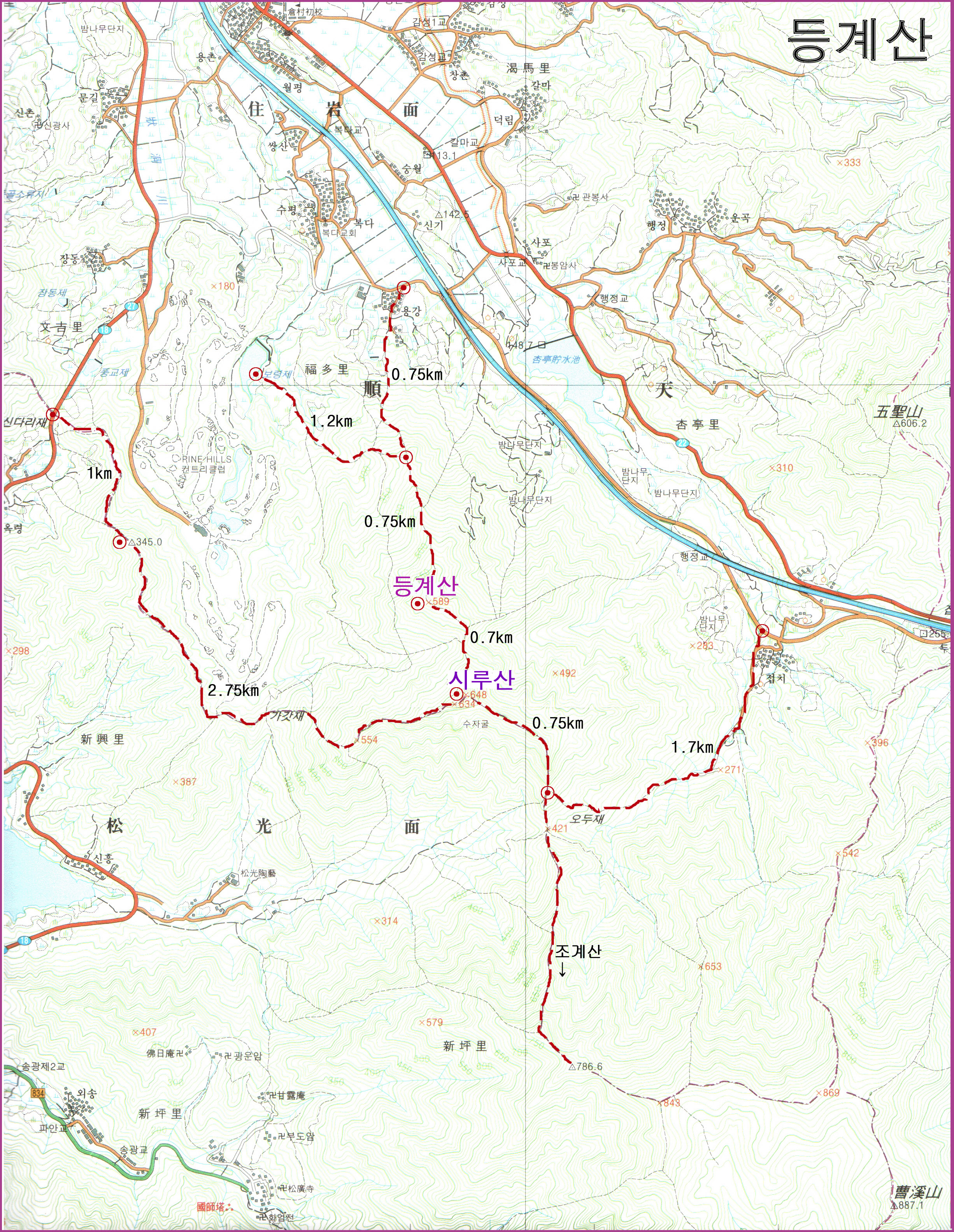 - 등계산 - 시루산 : 0.7km