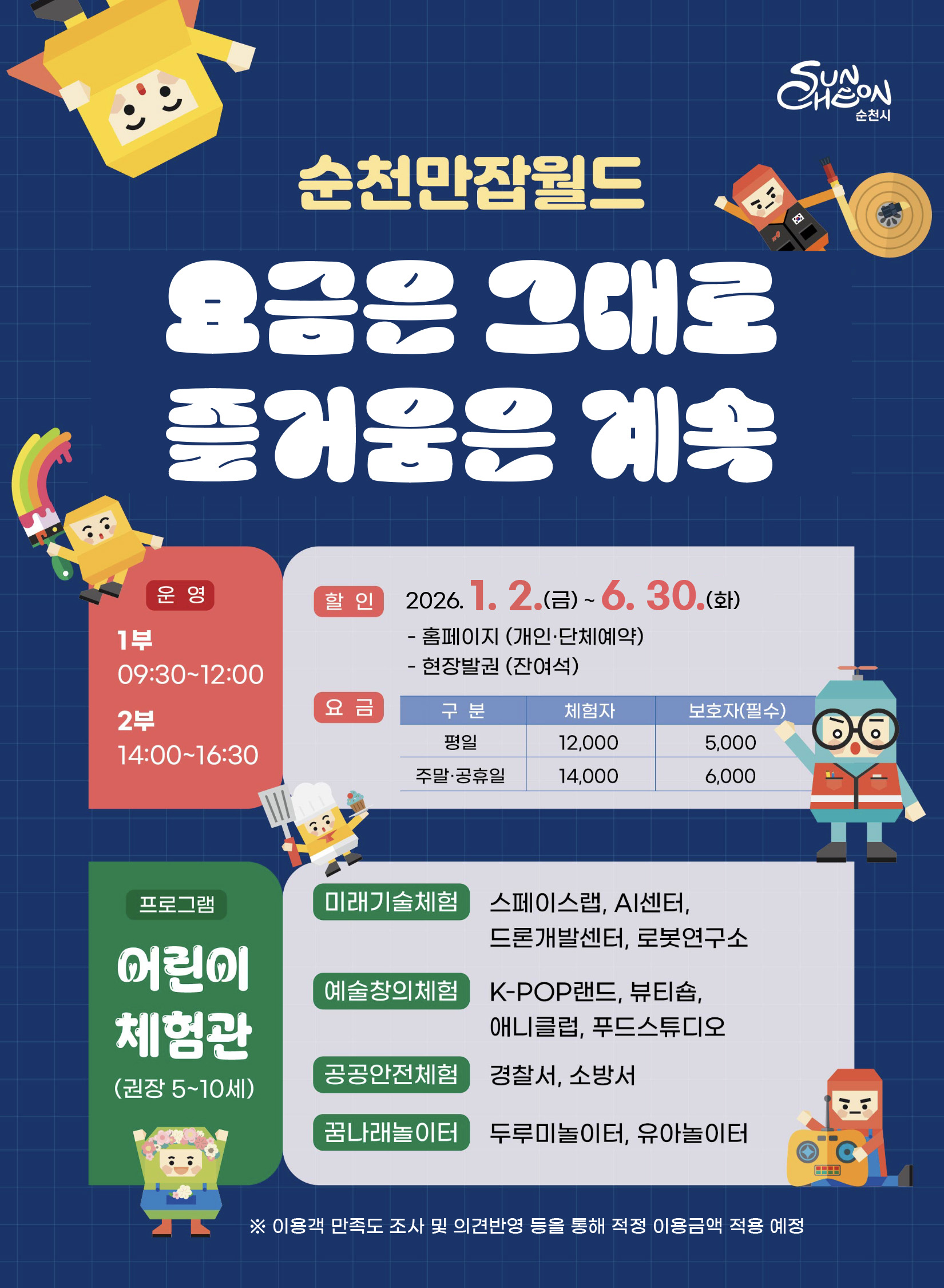 * 적용기간 : 2026. 1. 2. ~ 6. 30. / 추후 이용객 만족도조사 등을 통해 최종 이용요금 확정 예정